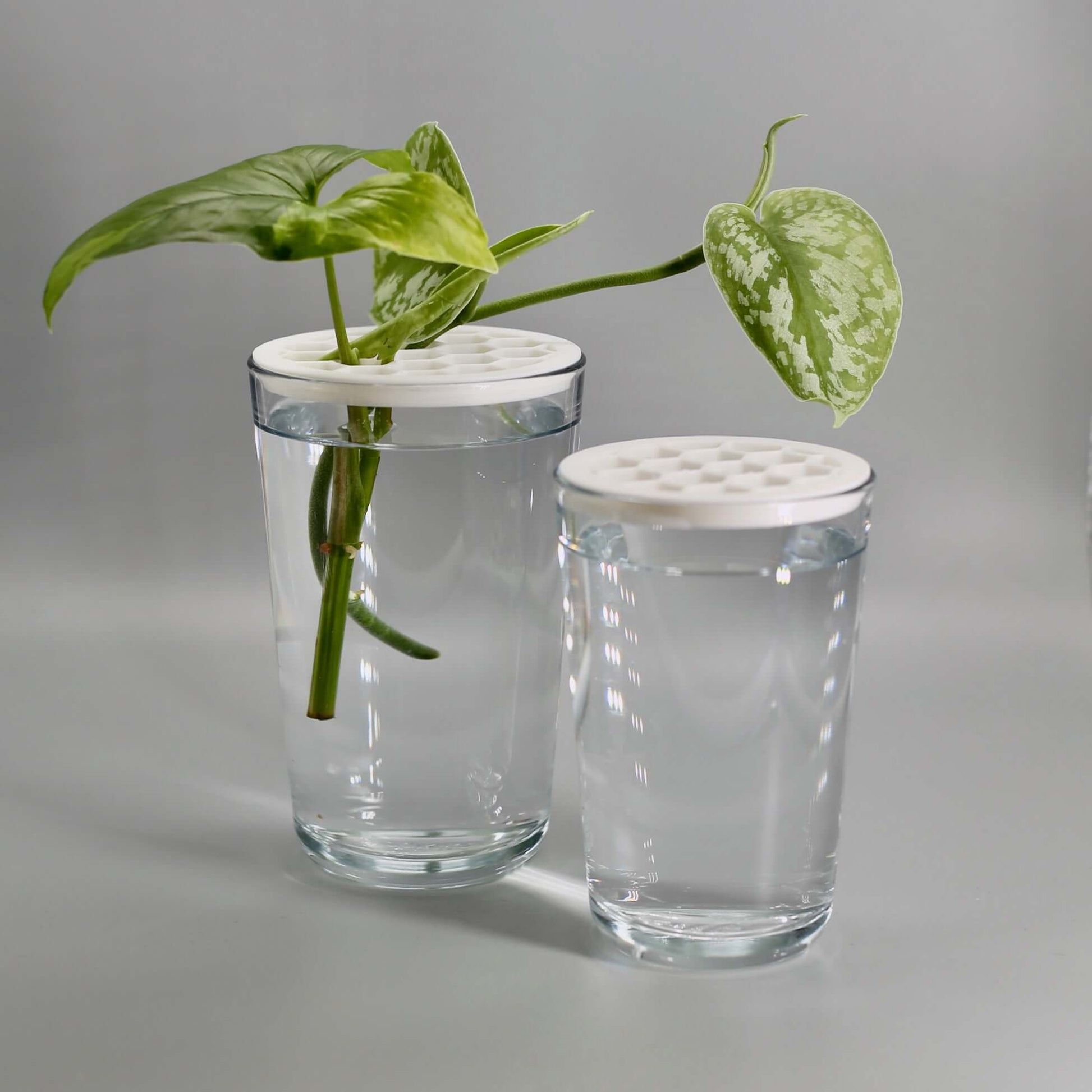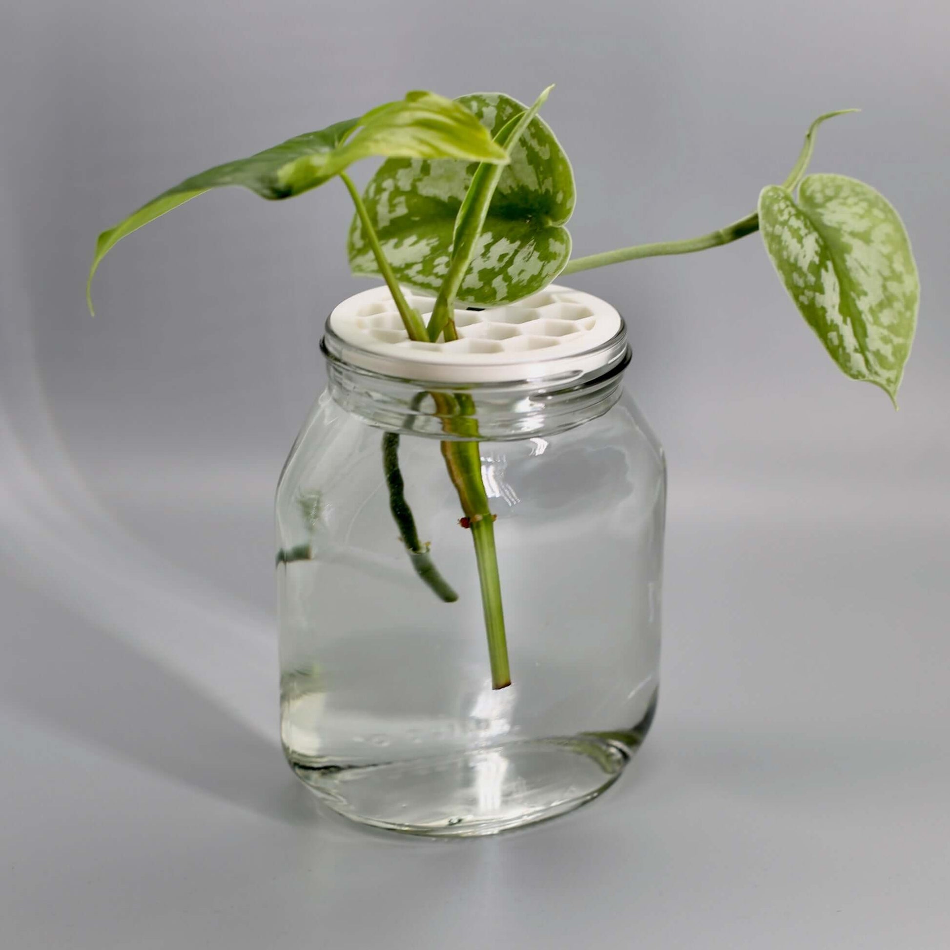 Stecklingshilfen die man wiederbenutzten kann mit Alltagsüblichen Gegenständen, das löst unser neues Produkt indem es auf die herkömmlichen Ikea 365 Gläser in beiden großen sowie auf das glas vom Nuss Nougat Creme Hersteller passt. Es Stabilisiert die Stecklinge im Wasser und bildet einen Untergrund wo man bestimmen kann wie tief man die Stecklinge einsetzt. Manche Stecklinge gedeihen am liebsten direkt in Wasser und dafür ist unsere Stecklingshilfe praktisch denn sie hält den Steckling in position im Wasser